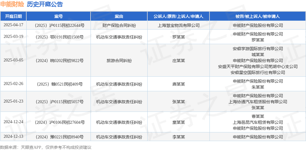 本站消息,根据天眼查APP显示,近日公布了一则申能财产保险股份有限公司作为被告/被上诉人的开庭公告,详细内容如下: